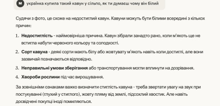 "Телеграф" обратился к нейросети, чтобы объяснили, что это такое. И вот какой ответ дал искусственный интеллект. В сообщении говорится, что это может быть недозрелый арбуз.