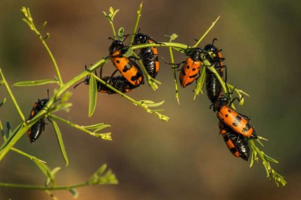 Главными врагами саранчи являются жуки-нарывники из рода милабрис, которые поедают ее яйца, рассказывает Виктор Бригадиренко. Эти жуки регулируют количество саранчи в природе – чем больше жуков, тем меньше шансов у саранчи размножиться массово.