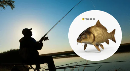 Затем он демонстрирует результат своей "рыбака" — в руках он держит то, что выглядит как большой улов.