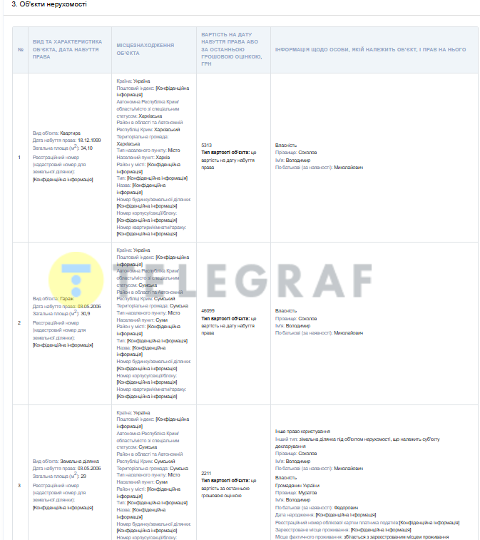 В документе отмечено, что в собственности судьи есть квартира в Харькове и гараж в Сумах. Также с 2019 года он арендует квартиру в Киеве.