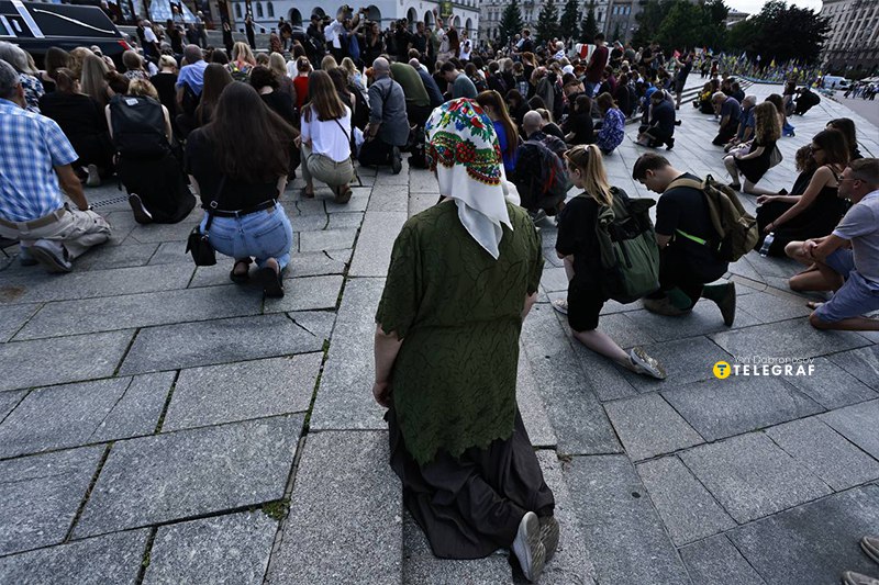 Короткая гражданская церемония проходит на Майдане Незалежности с 13:00. В 14:00 журналистку похоронят на Байковом кладбище. На Майдане отдать последнюю дань уважения Виктории Рощиной собралось много украинцев — люди на коленях прощаются с мужественной женщиной, которую убили россияне.
