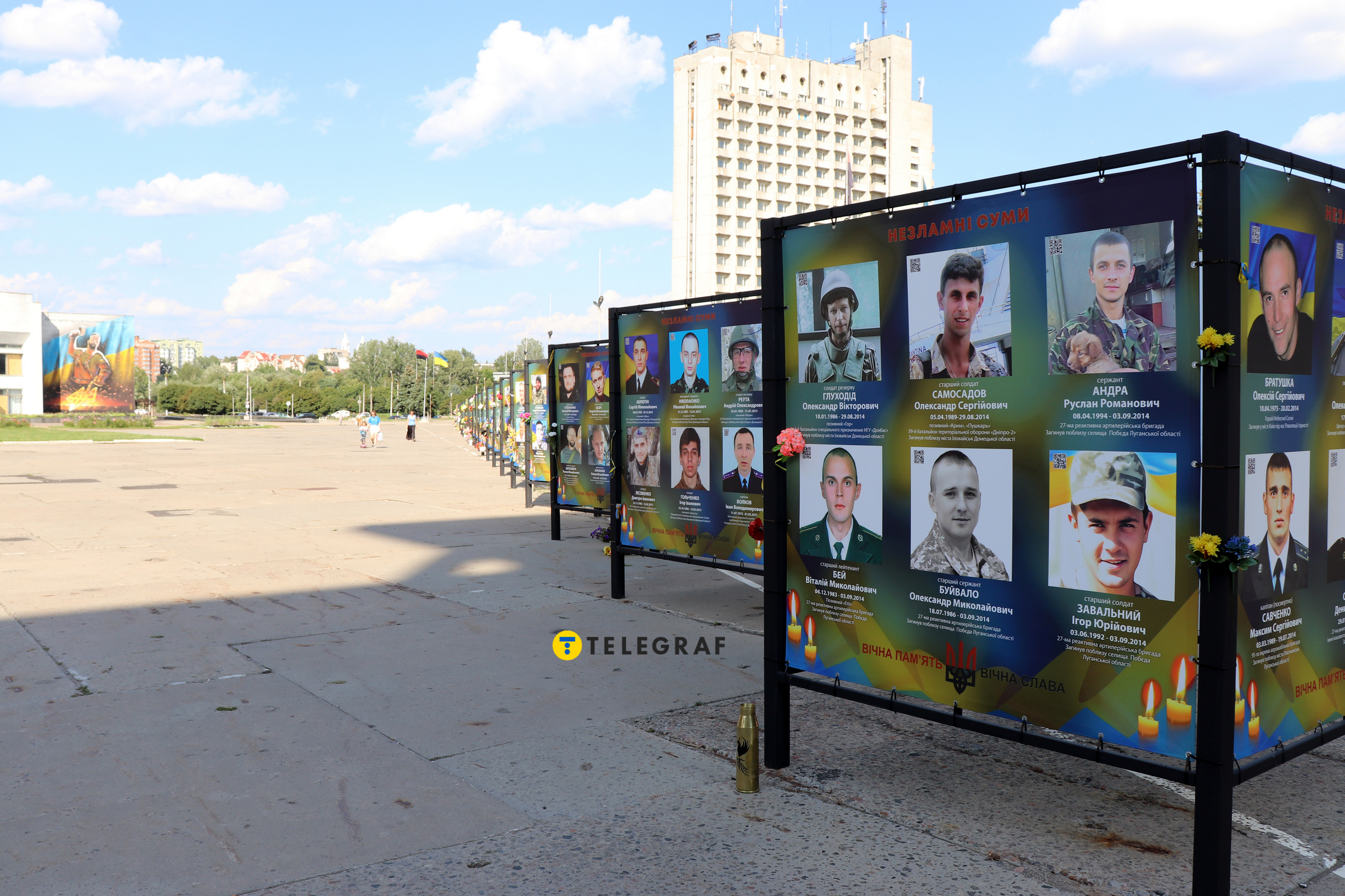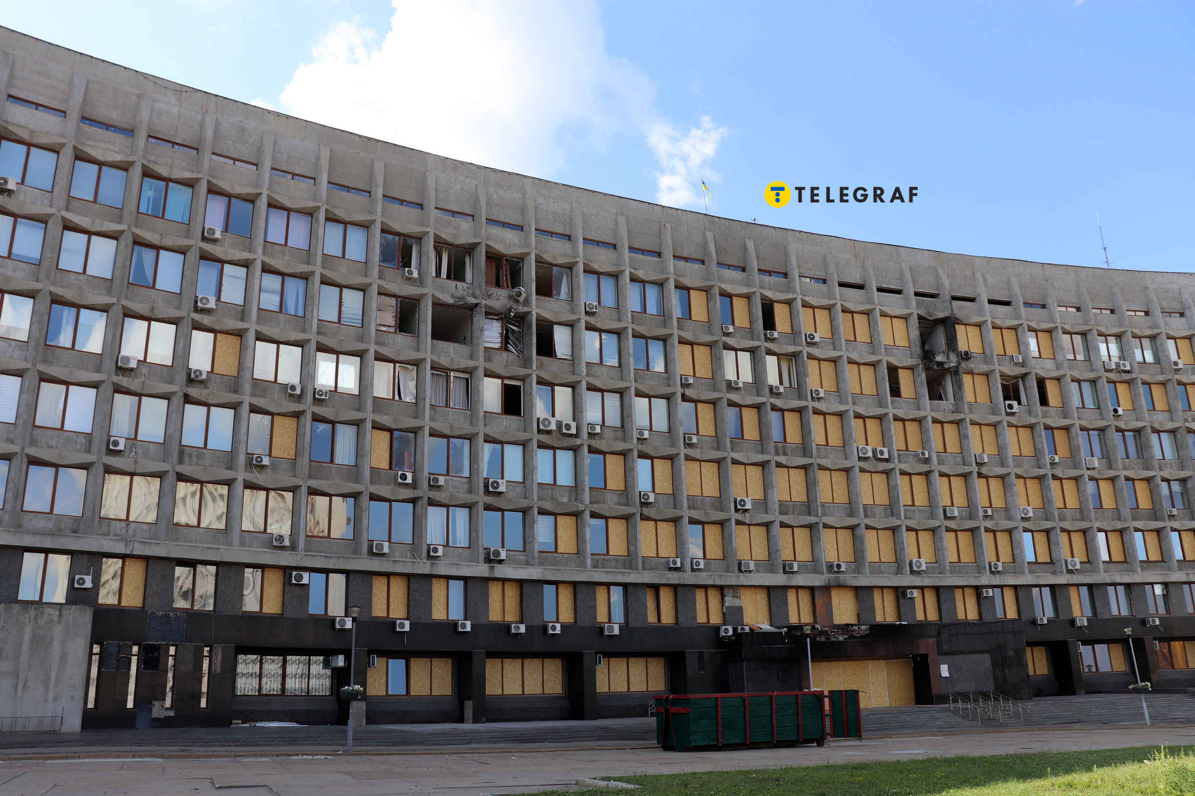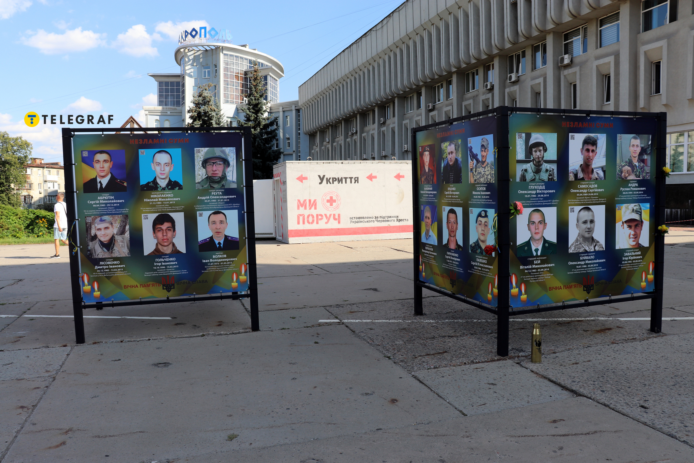 Прогуливаясь по улицам областного центра, везде можно найти напоминания о том, что идет война. Взять хотя бы площадь у облсовета — людей на ней много не встретишь, зато сразу бросаются в глаза черные провалы выгоревших окон, укрытия, аллея памяти погибших военных.