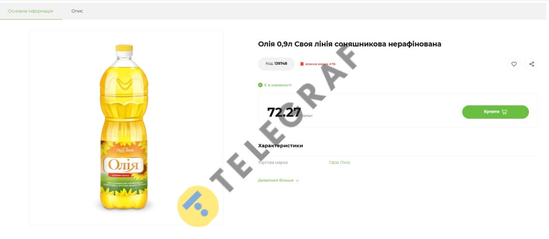 В розничных сетях цены также подскочили. По данным сайта АТБ, самое дешевое масло собственного производства "Своя линия" 0,9 литра стоит 72,27 гривны. Это означает, что цена за литр составляет 80,30 гривны.