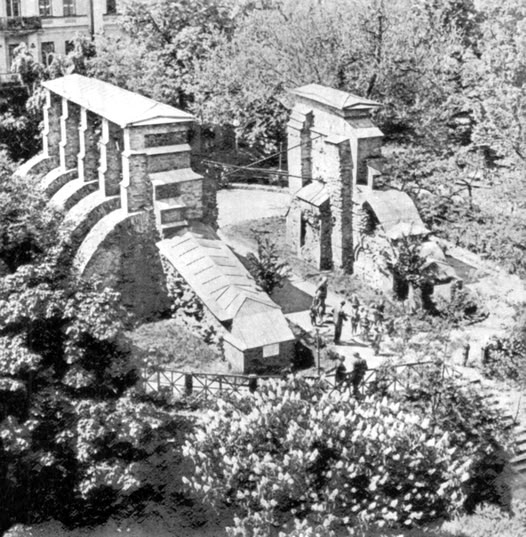 Это редкое черно-белое изображение позволяет современникам увидеть, как выглядел главный въезд в средневековый Киев времен Ярослава Мудрого в советский период