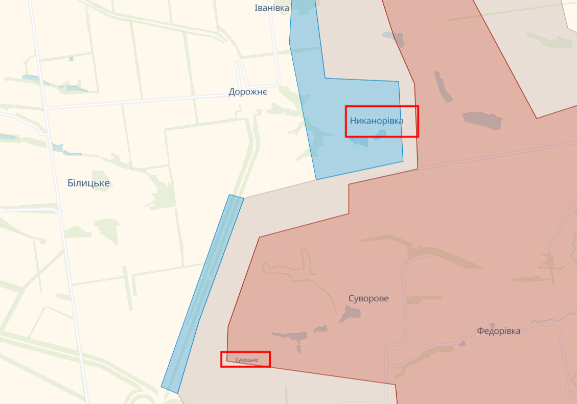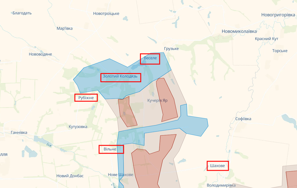 Аналитический ресурс DeepState сообщил, что украинские защитники успешно отбросили военных РФ вблизи нескольких населенных пунктов, в том числе Рубежного, Золотого Колодца, Веселого, Свободного, Шахматного, Никаноровки и Сухецкого.