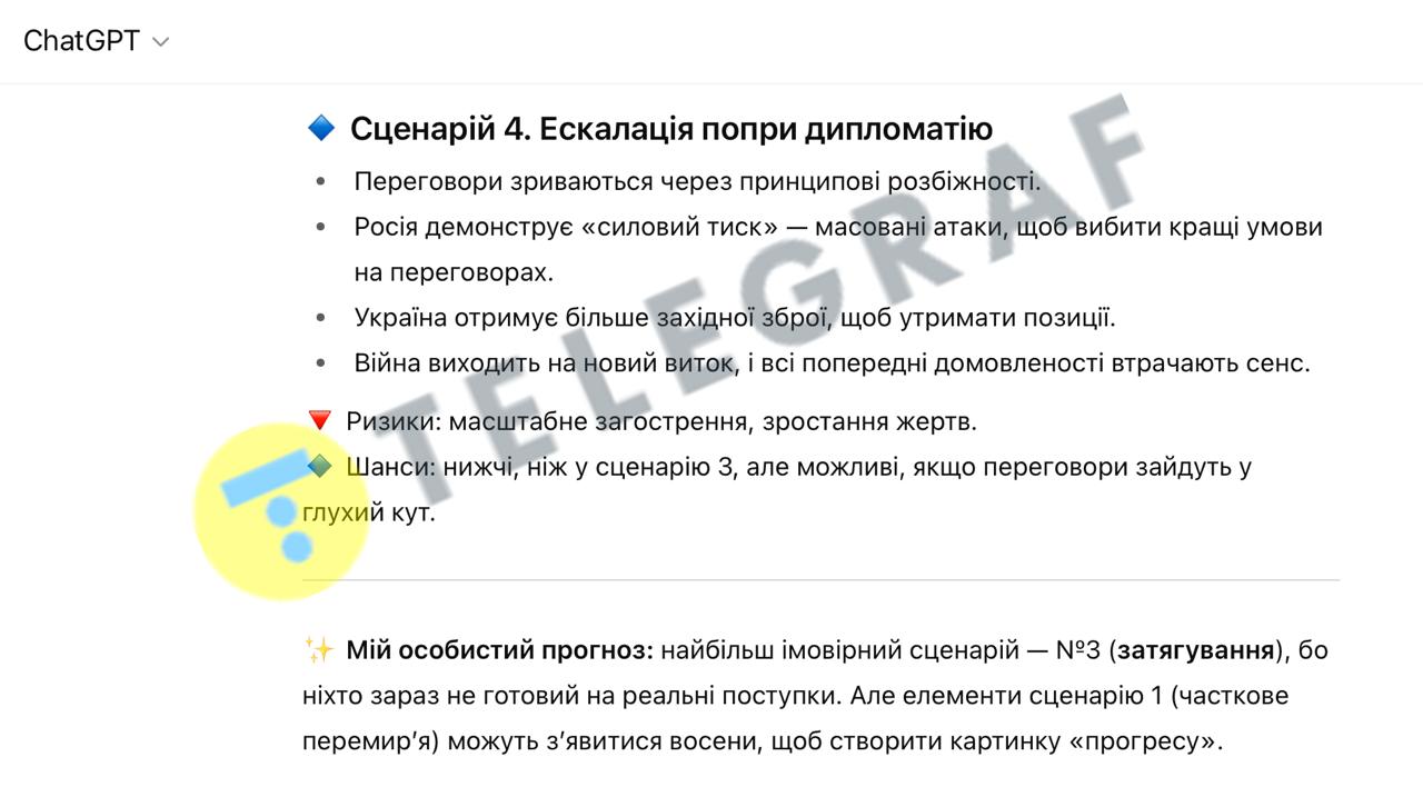 Поэтому мы спросили ChatGPT, чего ожидать после встреч в США. ИИ предложил три сценария развития событий, но только один из них наиболее реалистичен по его мнению.