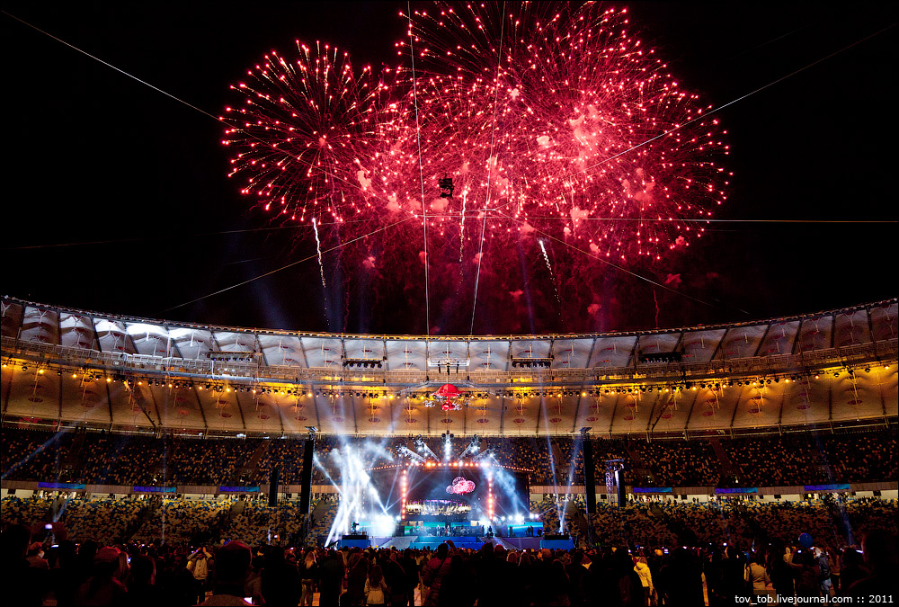 Торжественное открытие обновленного стадиона состоялось 8 октября 2011 года. Грандиозное театрализованное шоу с участием 2 тысяч артистов стало настоящим праздником для всей страны.