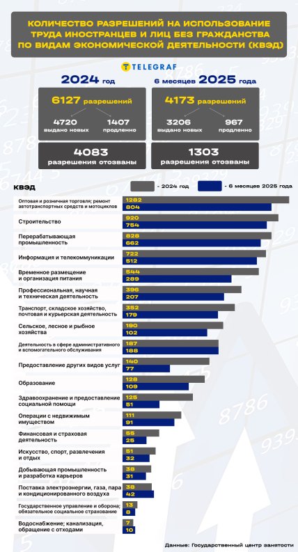 Еще один вариант – иностранные работники. Официальное количество зарубежных специалистов, которые привлекались к рынку труда в Украине, было на пике в 2021 году. Тогда служба занятости предоставила 21,7 тыс. разрешений на трудоустройство. Но в последующие годы из-за активной фазы боевых действий этот показатель уменьшился в разы. По данным Государственного центра занятости в 2022 и 2024 годах иностранцы получили более 6 тыс. разрешений (в этой цифре как новые документы, так те, сроки действия которых были продлены), а в 2023 – 4,5 тысячи. За первое полугодие текущего года количество разрешений почти приблизилось к этому показателю и составило 4,1 тысячи.