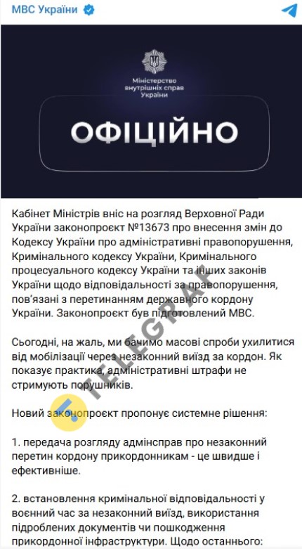 "Телеграф" рассказывает, какое наказание предлагает законопроект и почему МВД дает шанс беглецам вернуться без уголовных последствий.