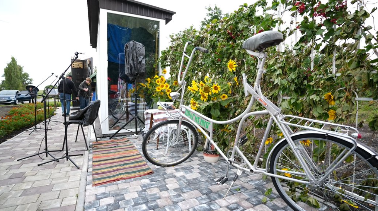 Рядом с памятным знаком Стаднику был установлен витраж с его личными вещами. Здесь можно увидеть семейные фотографии, картину с бытовыми сценами, созданную художником, а также одежду и обувь, которые принадлежали Леониду. На церемонии открытия выразили благодарность благотворителям, которые помогли с его изготовлением и длительное время заботились о семье Стадников.