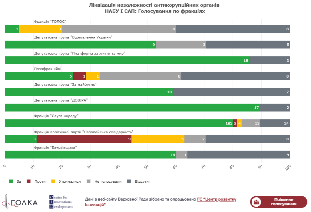 Как объясняет глава Центра развития инноваций Екатерина Иванченко, инструмент возник после резонансного голосования за ликвидацию независимости Специальной антикоррупционной прокуратуры и НАБУ. Тогда общество и международные партнеры увидели ограниченную субъектность Верховной Рады, и с тех пор возникла необходимость показывать, кто из депутатов поддерживает ключевые законопроекты, а кто нет.