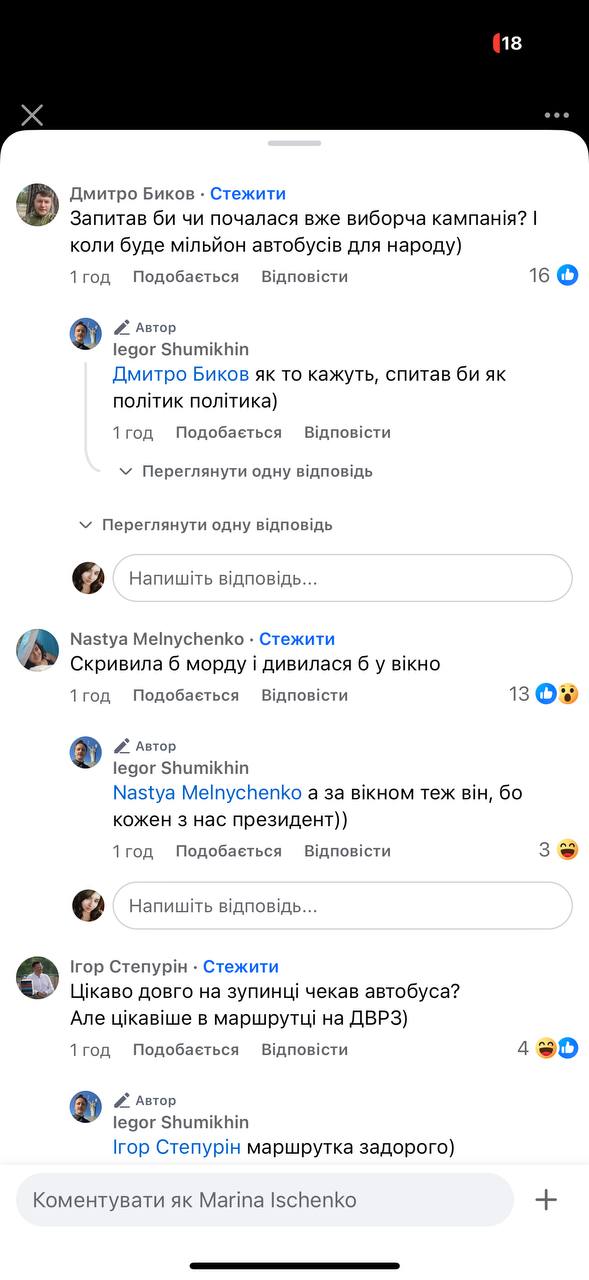 В сети украинцы активно начали обсуждать поездку Зеленского в автобусе и написали свое мнение. Журналист Егор Шумихин спросил пользователей сети, чтобы они сделали, если увидели президента в автобусе. Комментарии были разные.