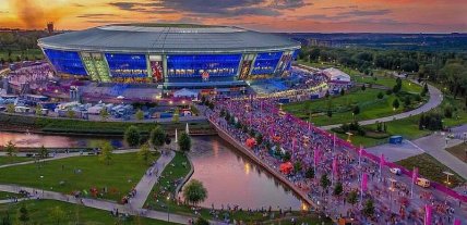 Барбадосская певица Рианна выступала на праздновании 75-летия ФК "Шахтер" на той же арене. Чтобы она чувствовала себя как дома, организаторам пришлось построить гримерную площадью 200 квадратных метров и привезти воду из Америки.