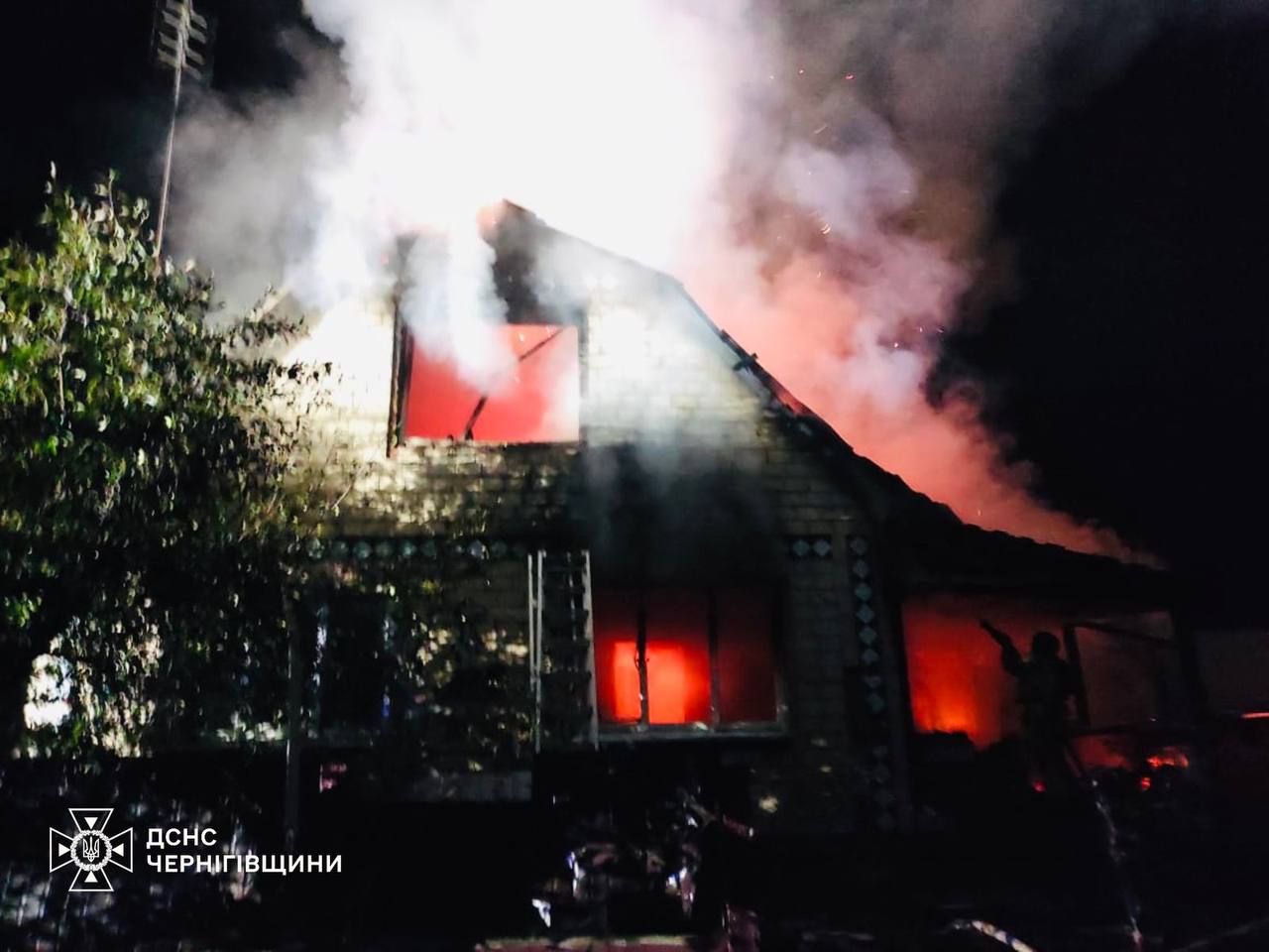 Из-за российского дрона также возникло возгорание жилого дома в г. Борзна Нежинского района Черниговской области. Как сообщили в ГСЧС, пожар ликвидирован. Кроме того, взрывной волной были повреждены семь жилых домов и два автомобиля. Но самое главное – жертв и пострадавших нет.