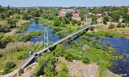 Особой жемчужиной локации является изящный подвесной пешеходный мост, известный как "Мост влюбленных". Пересекая реку Рось, он открывает невероятные панорамные виды на гранитные скалы и окружающие пейзажи. Это место стало настоящим символом романтики и внутренней гармонии, привлекательным для влюбленных пар и всех, кто ищет вдохновение среди природы.