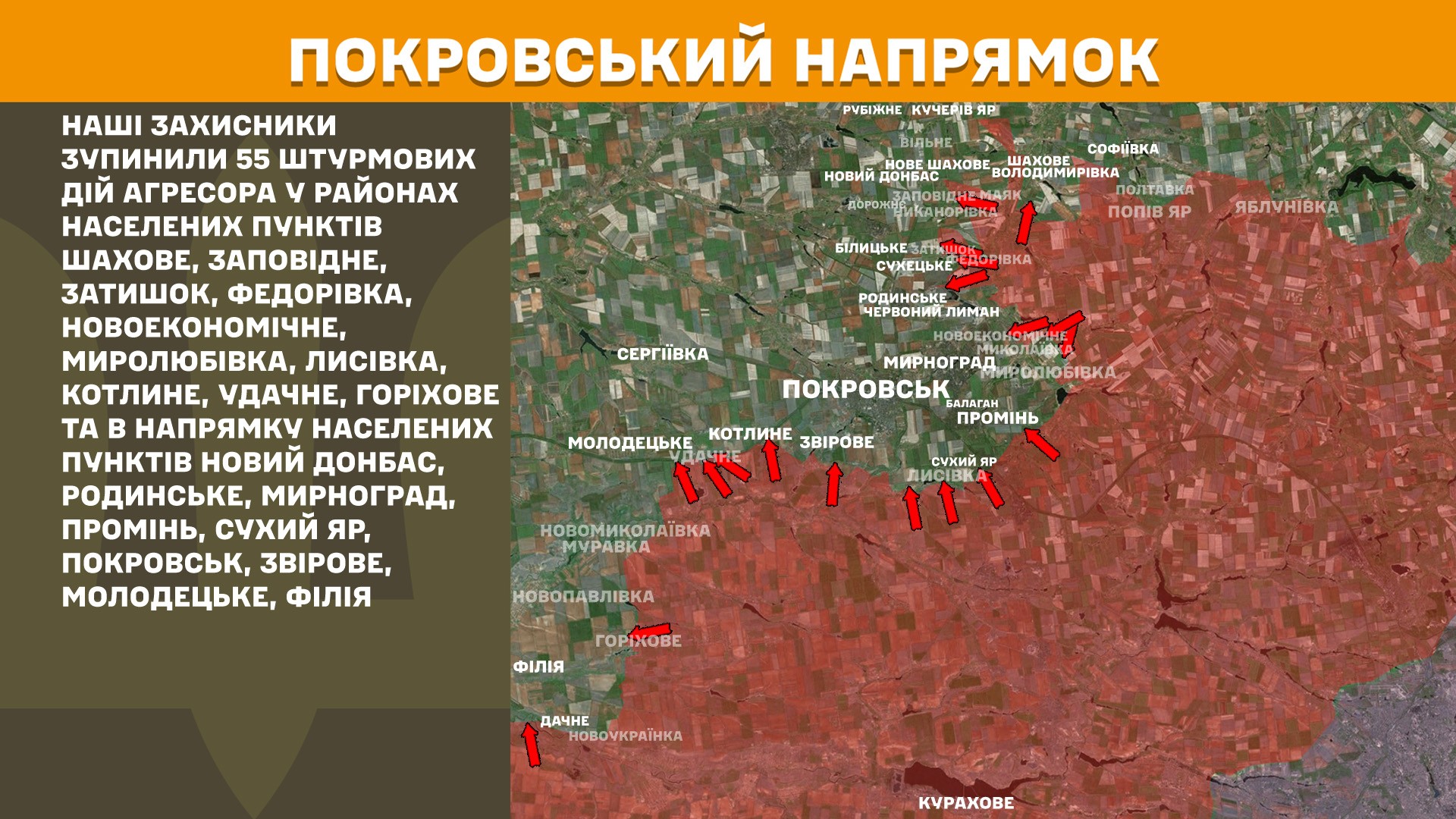 Генштаб ВСУ отчитывается о 55 штурмовых атаках россиян на Покровском направлении. Это самое большое количество атак среди всех направлений.