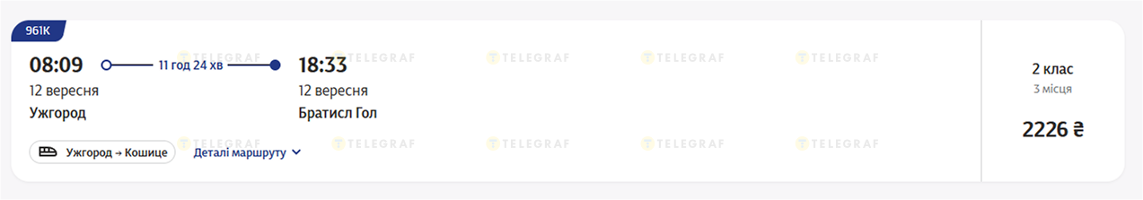 Стоимость билетов в Братиславу не имела – за 2 класс просят 2226 грн. Отметим, что среди остановок поезда, самая длинная в Чопе, где осуществляется пограничный контроль при выезде из Украины — 1 час 28 мин.