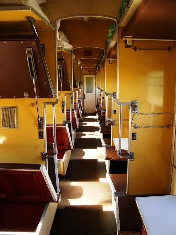 Интерьер старого купейного вагона был простым и в то же время уютным. В купе размещались четыре места — два по бокам вдоль окон и два — над ними, на полках для сна. Внутри вагонов царила сдержанная эстетика: деревянные панели, тканевая обивка сидений и небольшие полки для вещей.