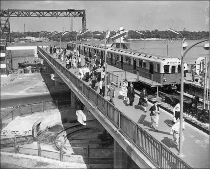 Для подъема вагонов на эстакаду станции под платформой "Днепр" был смонтирован поворотный круг — уникальный механизм для разворота и подъема вагонов. Вагон заезжал на этот круг, где разворачивался на 90°, после чего через специальный подъемник поднимался на платформу станции через отверстие в эстакаде. Аналогичным образом вагоны спускались вниз для технического осмотра и ремонта. Депо "Днепр" располагалось рядом и было рассчитано на два вагона. К марту 1962 года этот подъемник и поворотный круг выполнили уже более 630 циклов подъема и спуска.
