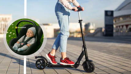 В Киеве женщина увозила ребенка по дороге на необычном транспорте. Ребенок лежал на элетросамокате.