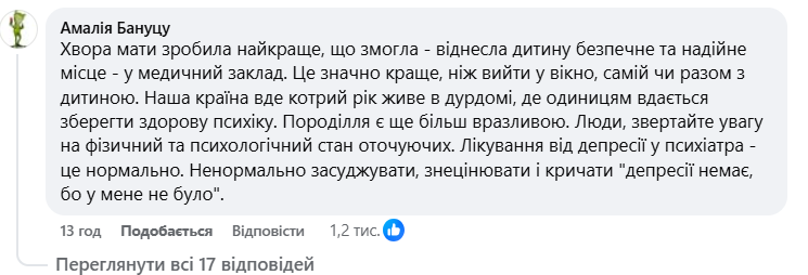 Некоторые отмечают, что мать поступила правильно, оставив ребенка в контролируемой медицинской среде, что гораздо лучше, чем рисковать ее жизнью. "Больная мать сделала лучшее, что смогла — отнесла ребенка в безопасное и надежное место", — пишет пользователь, отмечая важность понимания послеродовой депрессии.
