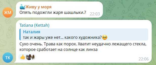Сообщается, что пожарные уже на месте, однако о причинах возгорания пока официальной информации нет. Местные жители жалуются, что в районе пляжа нечем дышать.