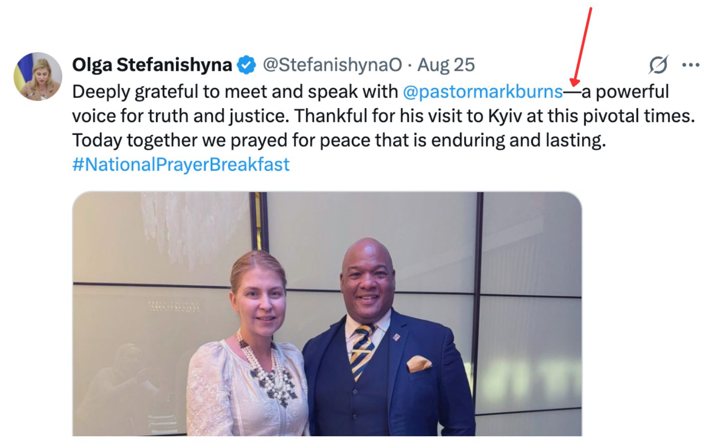 - Второе сообщение о встрече Стефанишиной с пастором Марком Бернсом также написано человеком.