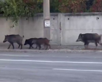 В Запорожье посреди города заметили целое стадо диких кабанов. Опасные, но милые звери бежали по своим делам и попали в объективы очевидцев.