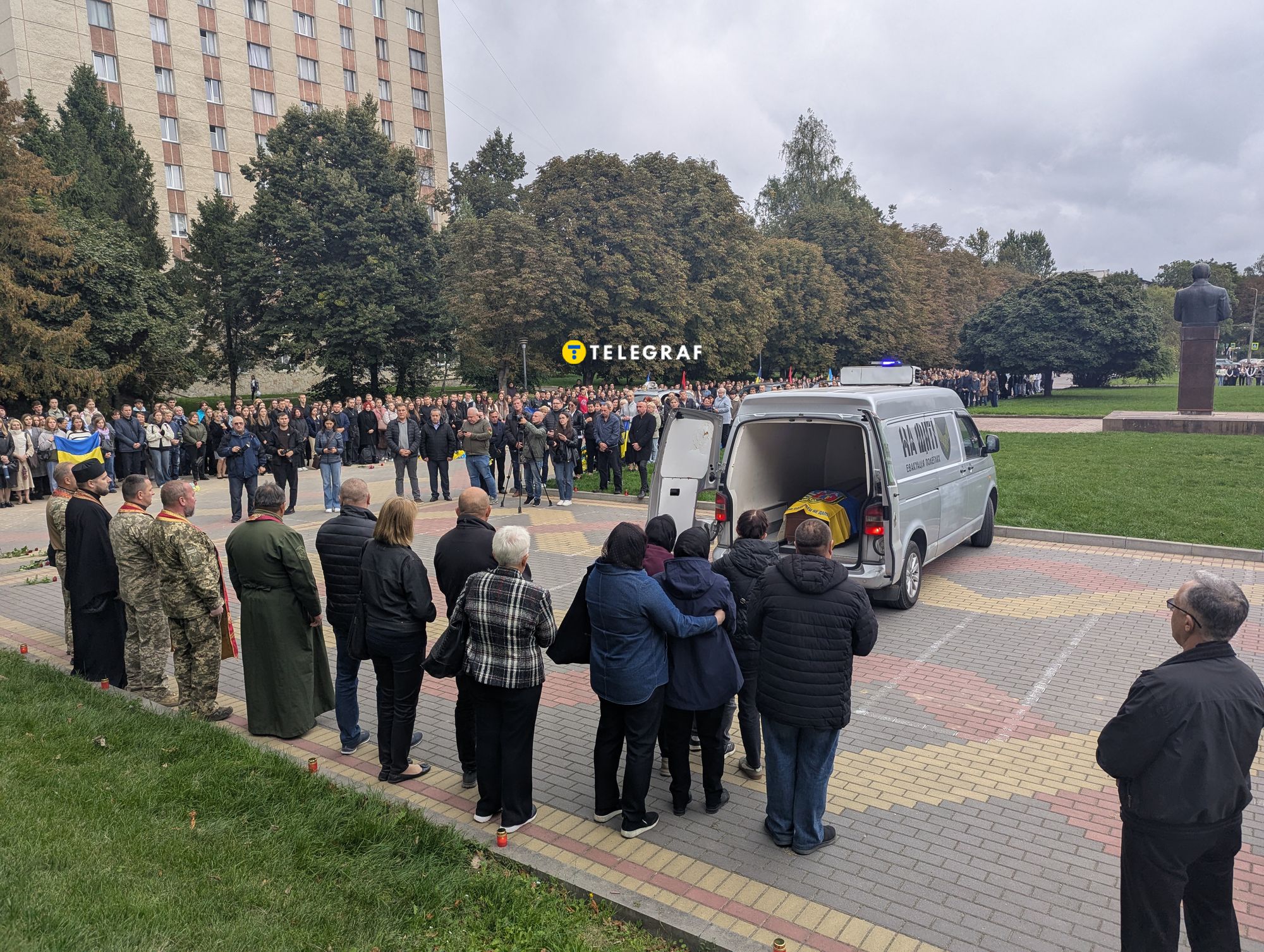 Корреспондентка "Телеграфа" побывала на церемонии прощания с доцентом, кандидатом исторических наук Владимиром Брославским. На площадь перед университетом вышли сотни студентов, коллег, чтобы почтить память погибшего. Присутствовали также и родные Героя — огорченная мать, жена, дочь.