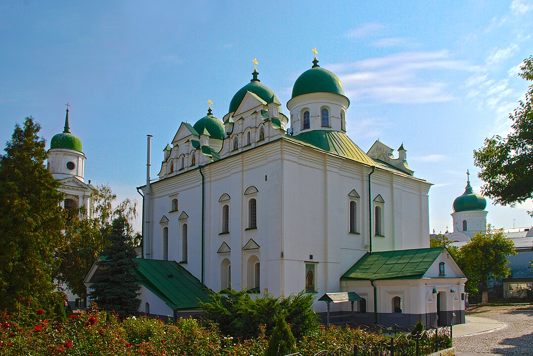 Вознесенский собор, построенный в стиле украинского барокко в первой трети XVIII века, поражает своими пропорциями и декоративным богатством. Колокольня над Святыми Вратами была перестроена в начале XIX века архитектором Андреем Меленским в стиле классицизма, создав гармоничное сочетание различных эпох.