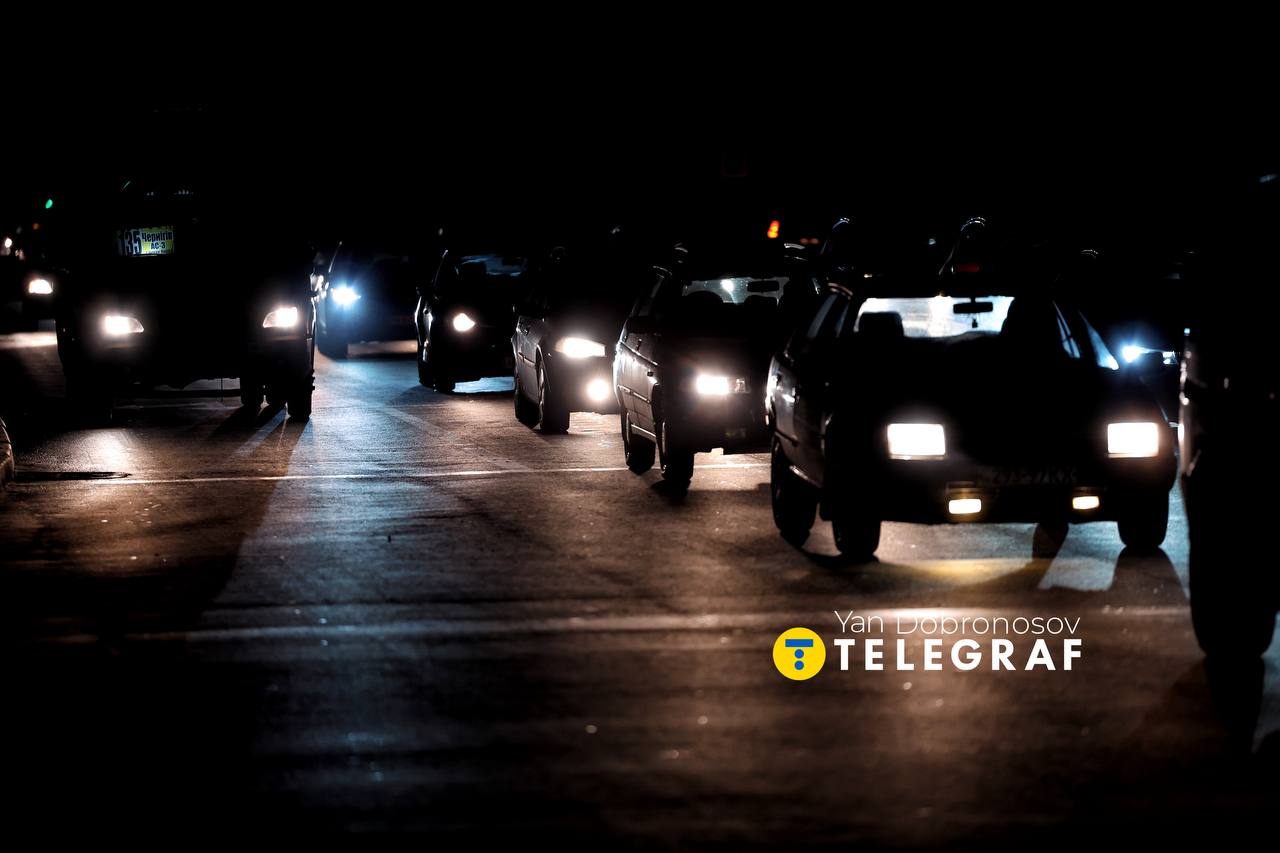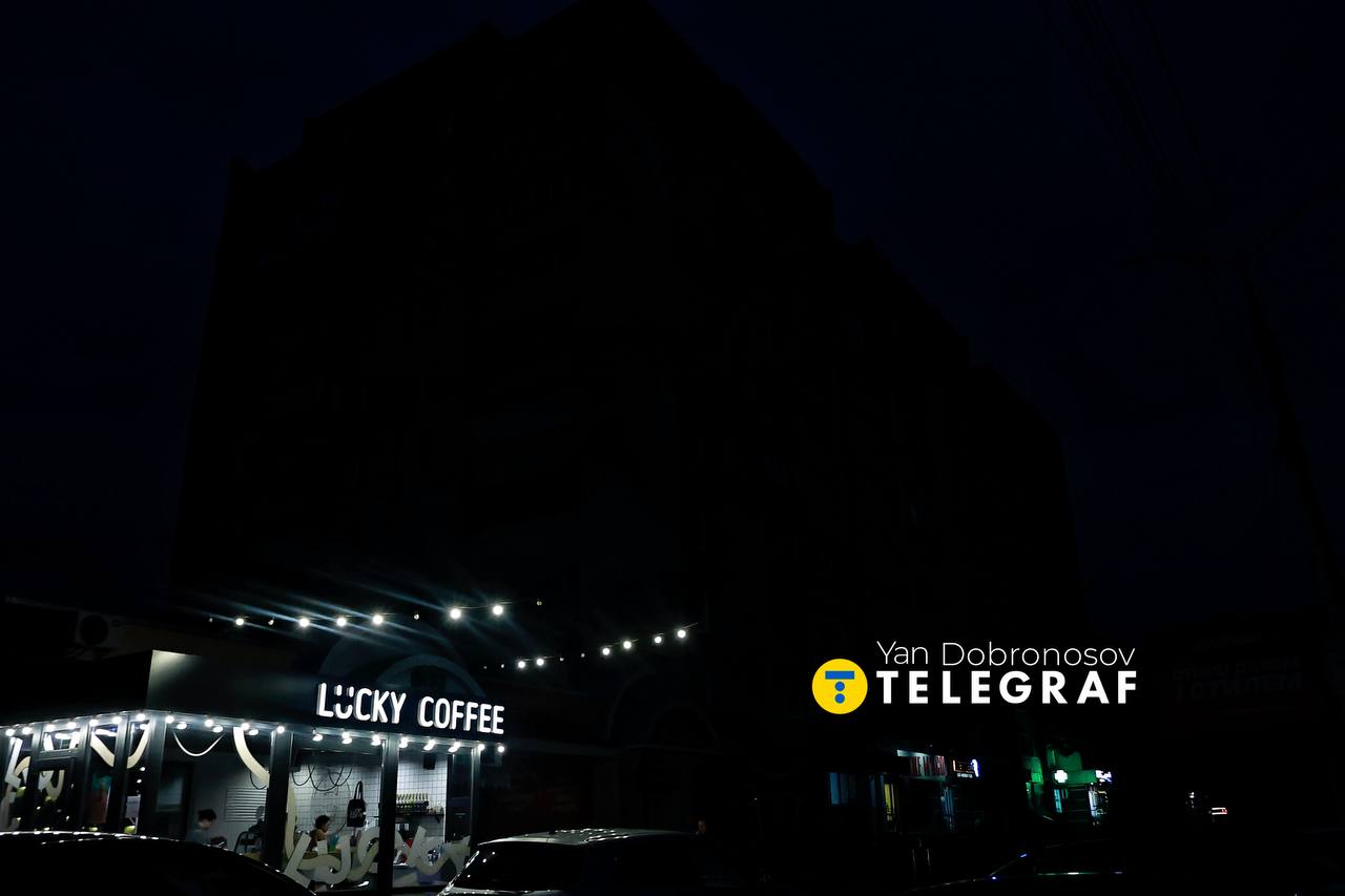 Ян Доброносов показал, как выживает город в темноте. Темные улицы в основном освещают только фары авто. Однако кое-кто подготовил генераторы.