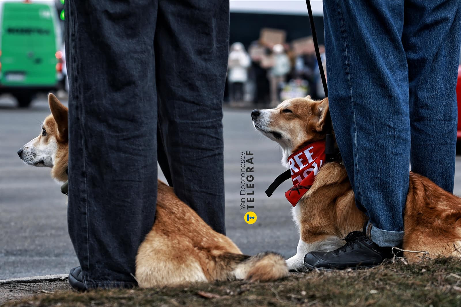 Собаки рядом и на протестах. То ли по закону о НАБУ и САП, то ли на митинге за освобождение военнопленных.