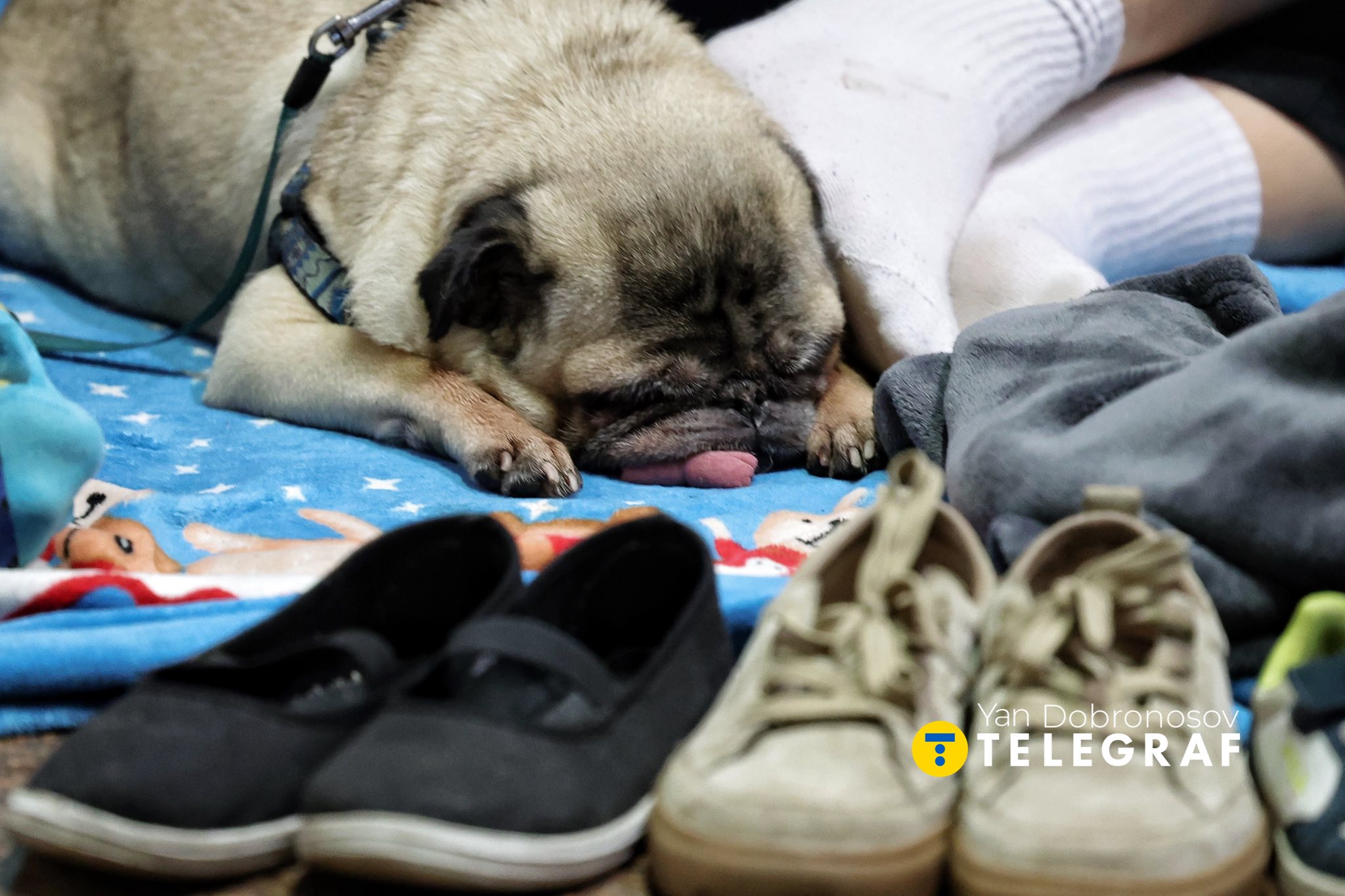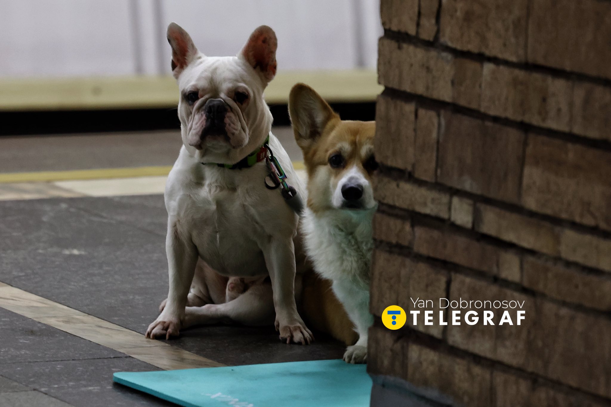 Когда Россия атакует Украину, вместе с хозяевами в укрытие направляются животные. Эти фото сняты в разные атаки в киевском метро.