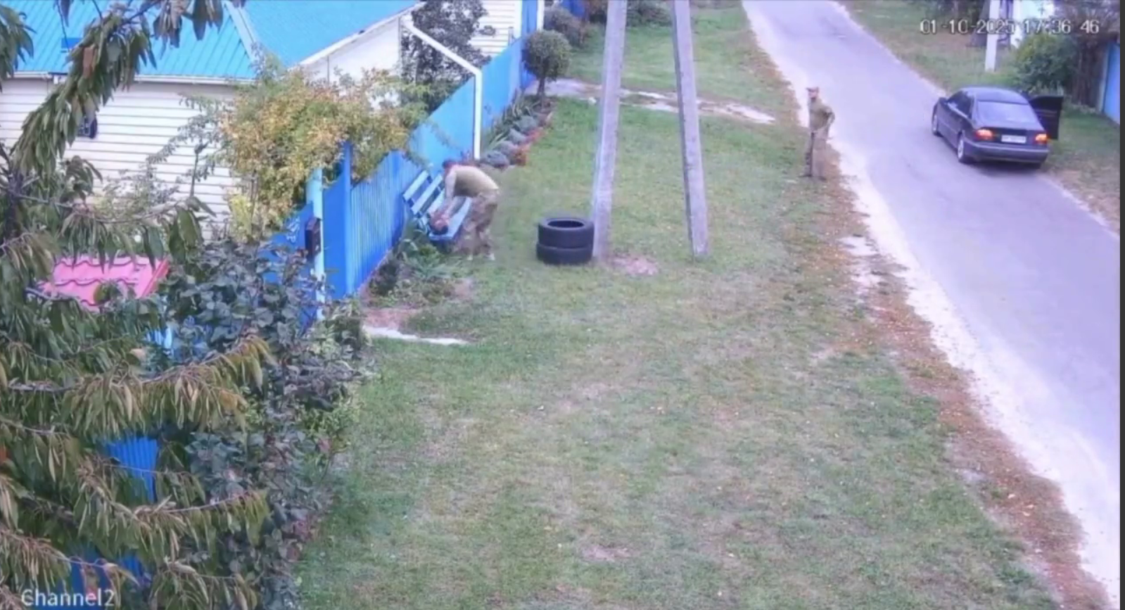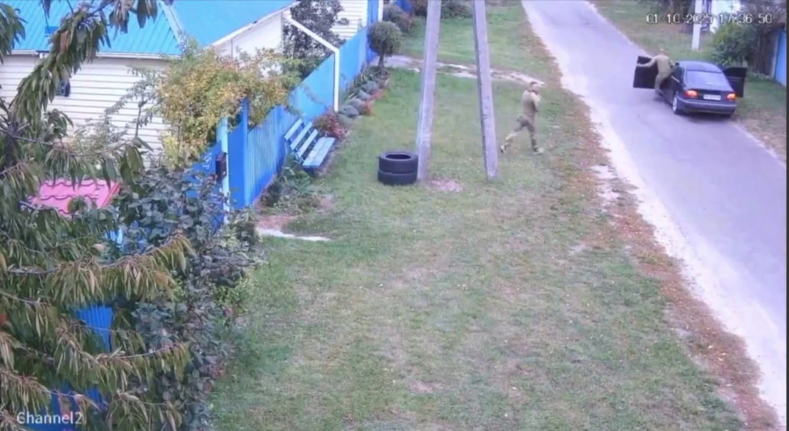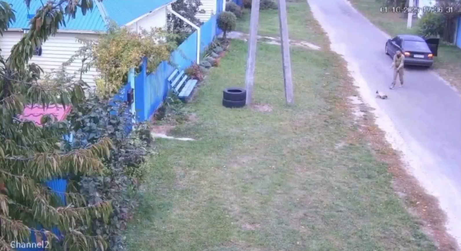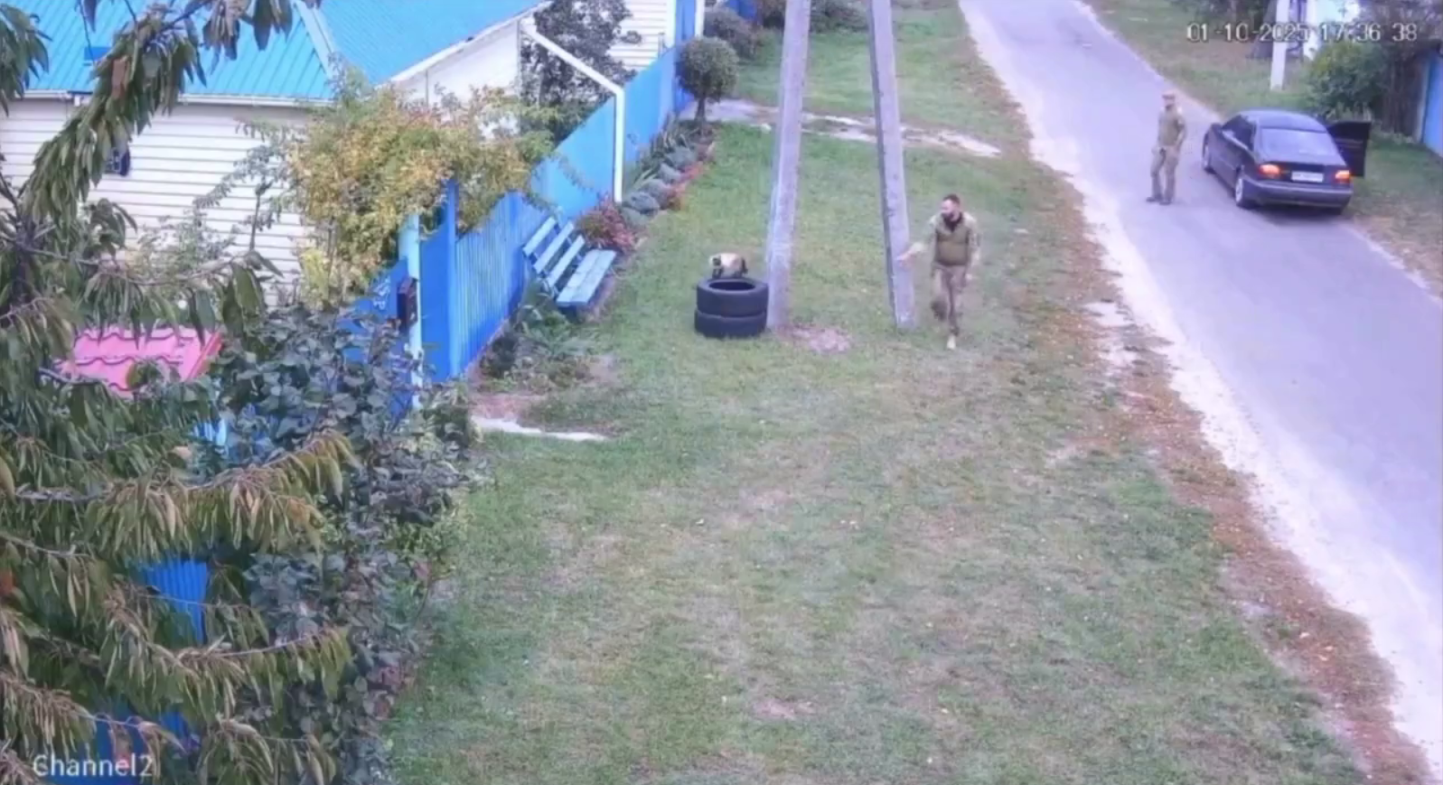 Военные увидели кота, сидящего посреди дороги, и попытались поймать его. Животное начало убегать, но один из людей в форме схватил кота и прижал к себе, показано в видео с камеры наблюдения, датированное 1 октября.
