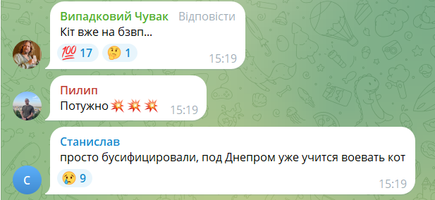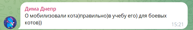 В сети сразу обвинили ТЦК в похищении кота, отметив, что "мобилизованное" животное уже проходит базовую общевойсковую подготовку на полигоне.