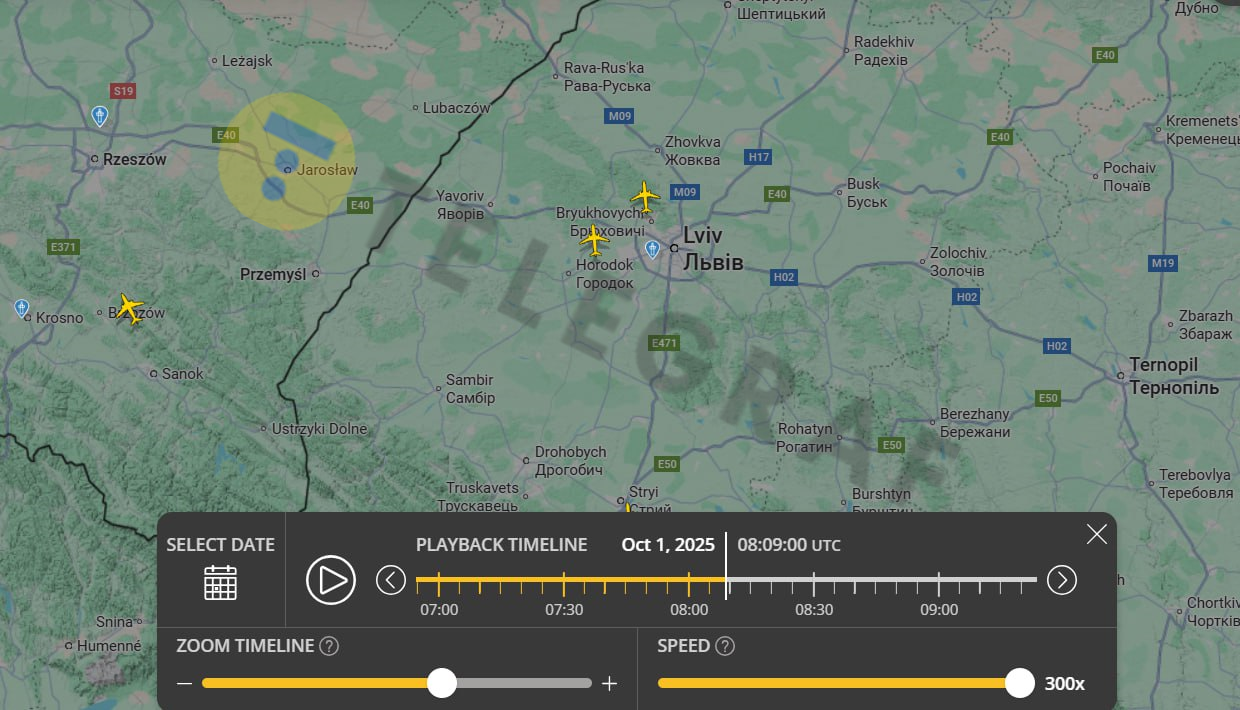 - Радары Flightradar24 зафиксировали пассажирские борта якобы над Львовщиной 1 октября