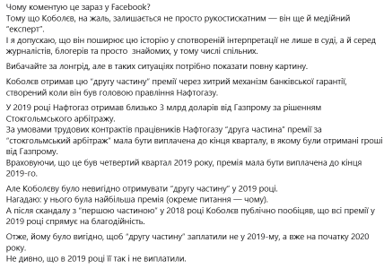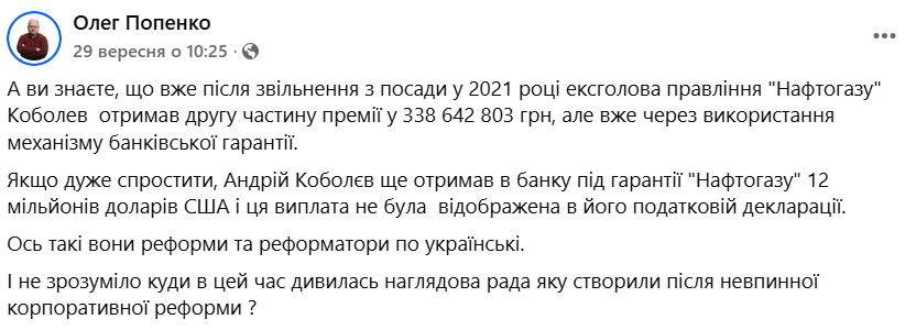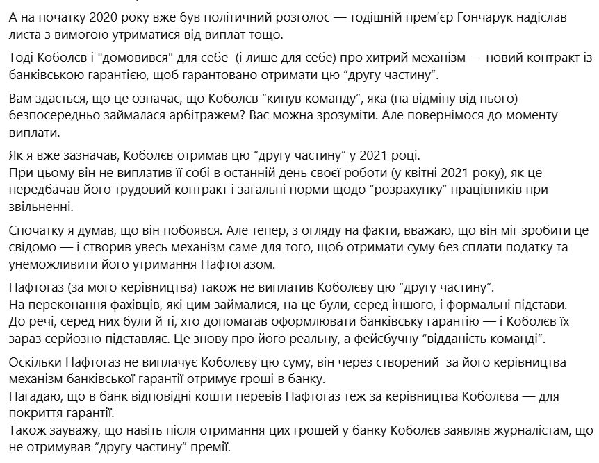 - Коболев получил вторую часть премии в 2021 году из-за банковской гарантии, уже не работая в "Нафтогазе"