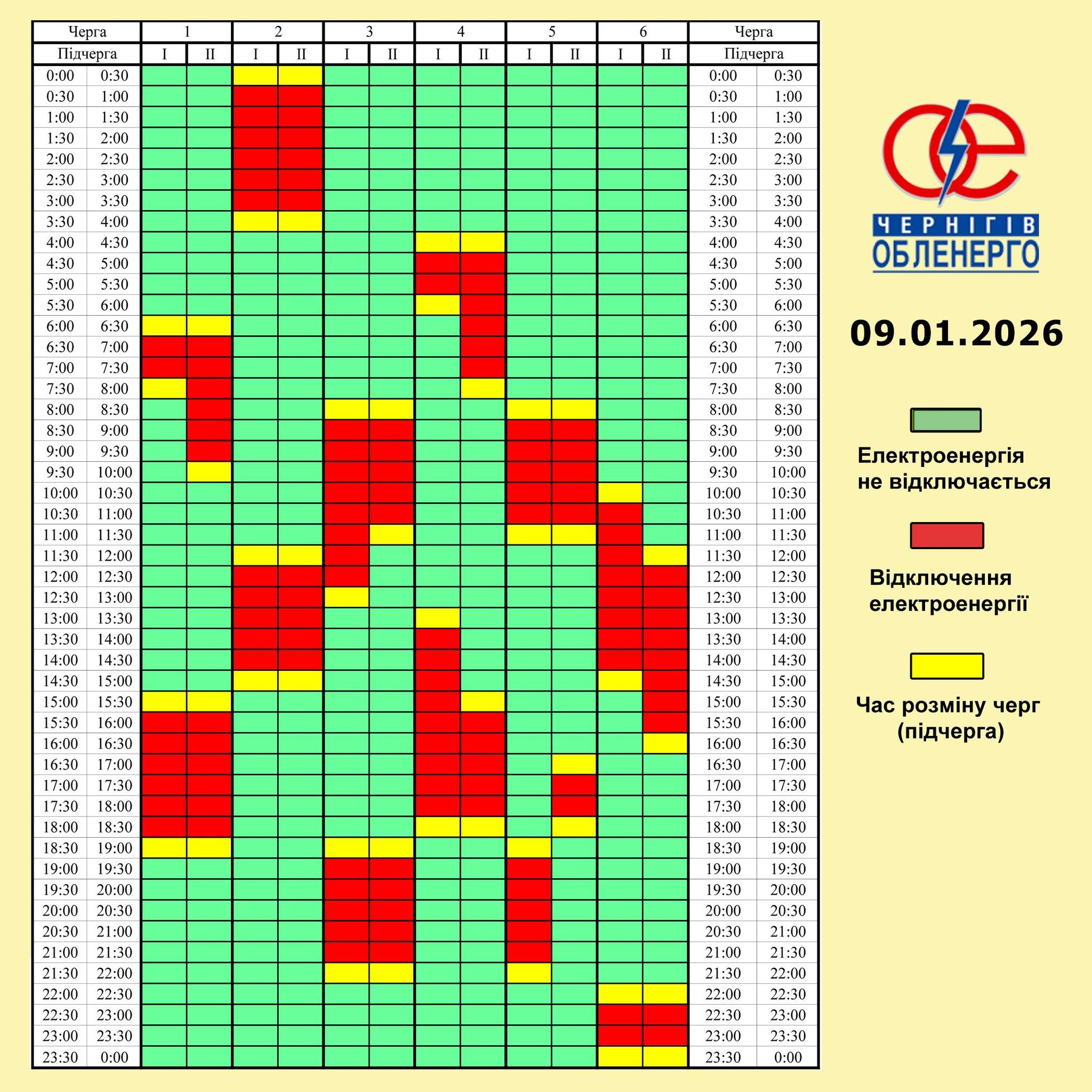 Детальнее об отключении электроэнергии на Черниговщине можно узнать в разделе на сайте АО "Черниговоблэнерго" или через чат-боты в Viber и Telegram @ChernigivOEbot.