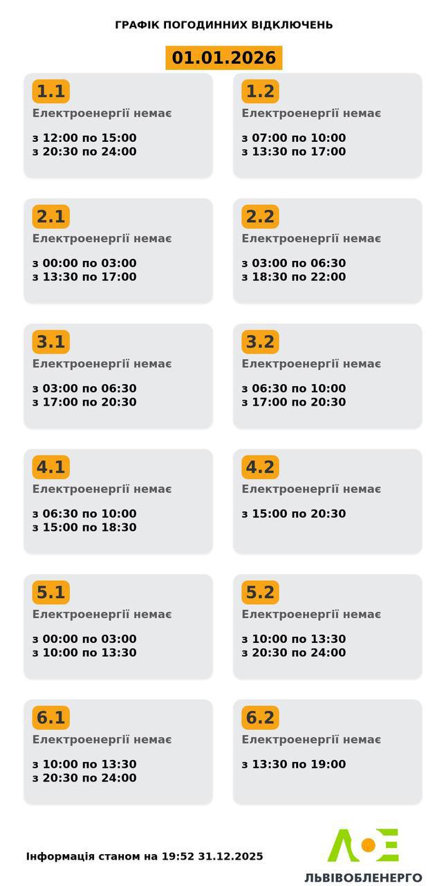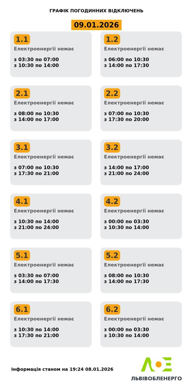 График отключений электроэнергии во Львове и Львовской области определяет ЧАО "Львовоблэнерго". Узнать свою группу (очередь) отключений можно на сайте компании в специальном разделе.