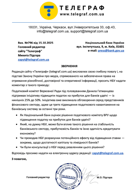 Напомним, на днях Комитет Верховной Рады по финансам, налоговой и таможенной политике рекомендовал парламенту принять за основу законопроект №14097 о внесении изменений в Налоговый кодекс Украины об особенностях налогообложения банков налогом на прибыль предприятий в 2026 году. Законопроект предлагает на 2026 год временно установить для банков ставку налога на прибыль в размере 50%, а также запретить уменьшение финансового результата до налогообложения на сумму убытков прошлых периодов.