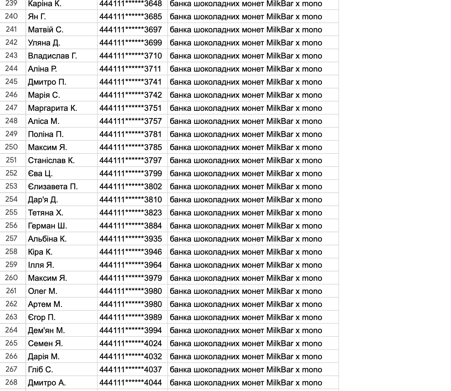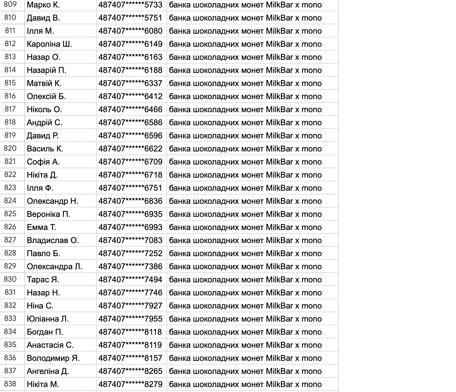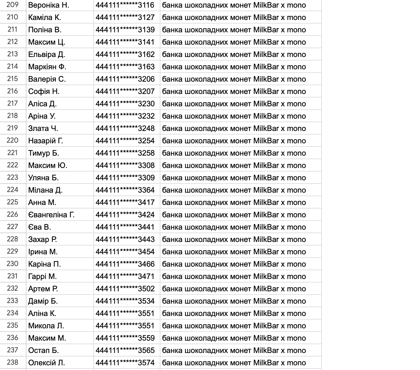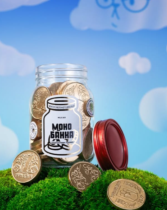Дети получили по банку шоколадных монет MilkBar x mono. Их презентовали в июне – стоимость такой баночки 999 грн.