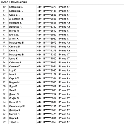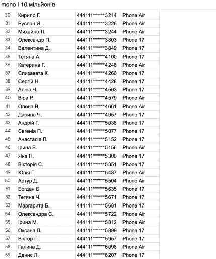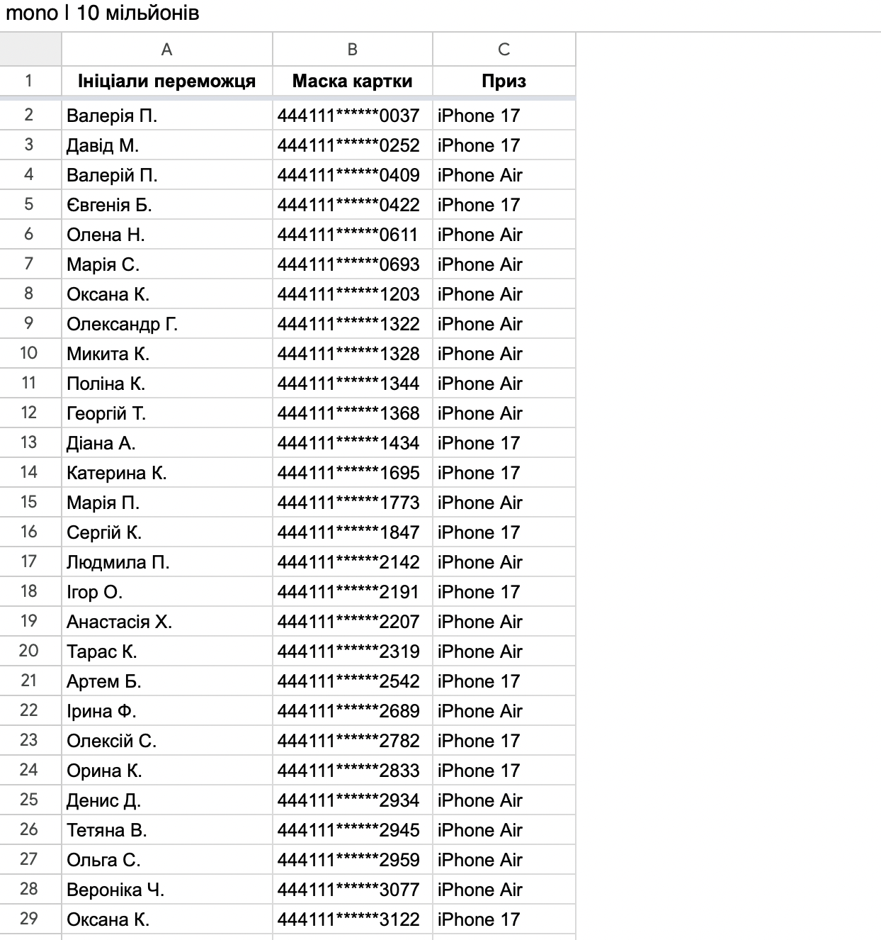 Выиграли iPhone и не только: появился полный список победителей monobank (найдите себя)