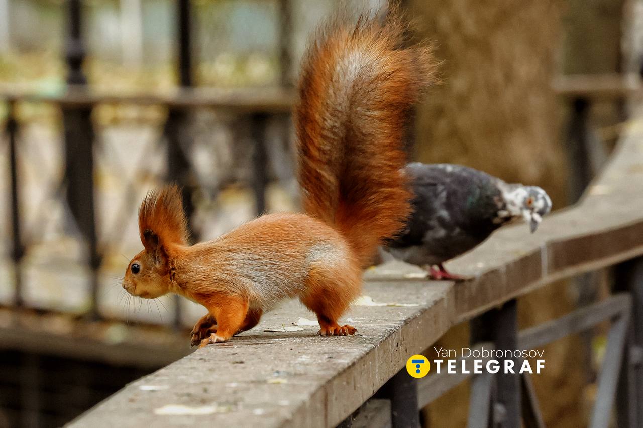 Об этом свидетельствуют фото корреспондента "Телеграфа" Яна Доброносова. В его объектив попали не только красивые пейзажи столицы, но и рыженькая белочка.