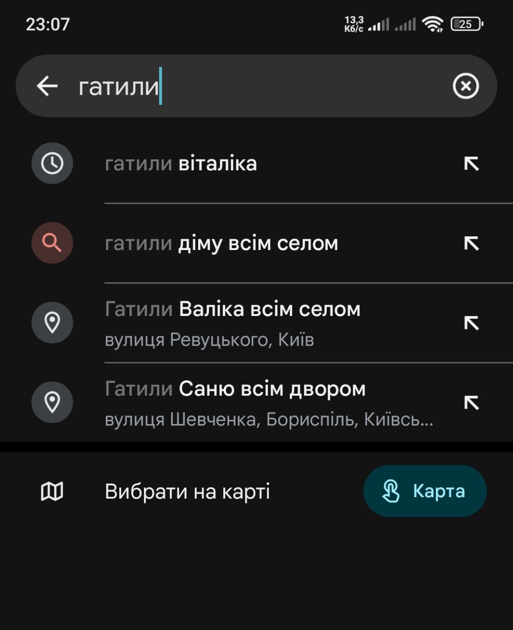 На Google-карте Украины можно найти локации с довольно необычными названиями, которые им дают люди. К одним из таких можно отнести локацию "Гатили Віталіка всім селом".