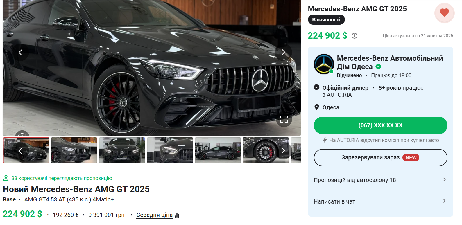 - Mercedes AMG GT стоит по разным оценкам 9-11 млн грн