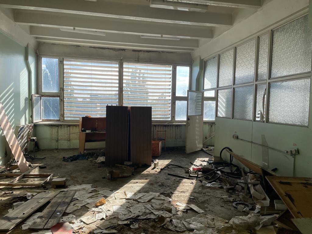 Итак, государственное предприятие, создававшее электронику для оборонного комплекса, теперь сдает помещение. На фото видны пустые коридоры с облупленной краской, заброшенные кабинеты с разбросанными бумажками и мебелью, лестница с бледно-голубыми стенами, где время якобы остановилось десятилетие назад.