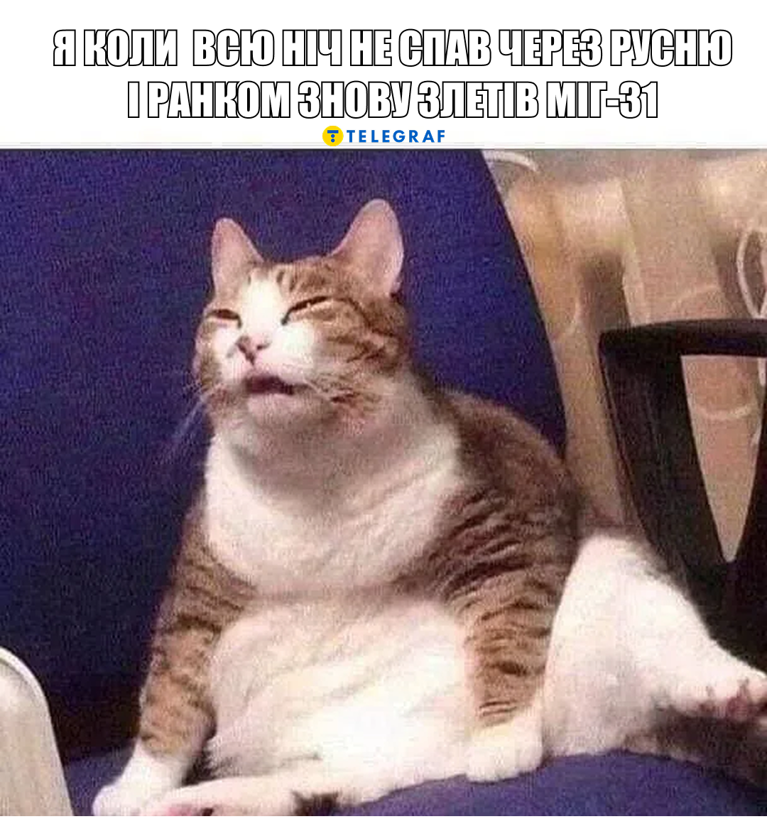 Также украинцы с сарказмом шутят об очередной ночи, в которую не было возможности выспаться, а с утра нужно на работу. Отдельная картинка есть о нашем состоянии, когда не спали из-за российской атаки, а с утра враг поднял в воздух истребитель МиГ-31К — и снова тревога.