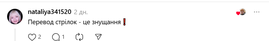 "Телеграф" собрал комментарии пользователей соцсети Threads, где украинцы обсуждали перевод времени в этом году. Стоит отметить, что их мнения разделились — некоторые против перехода на зимнее время, некоторые "за", а некоторым и вовсе все равно.