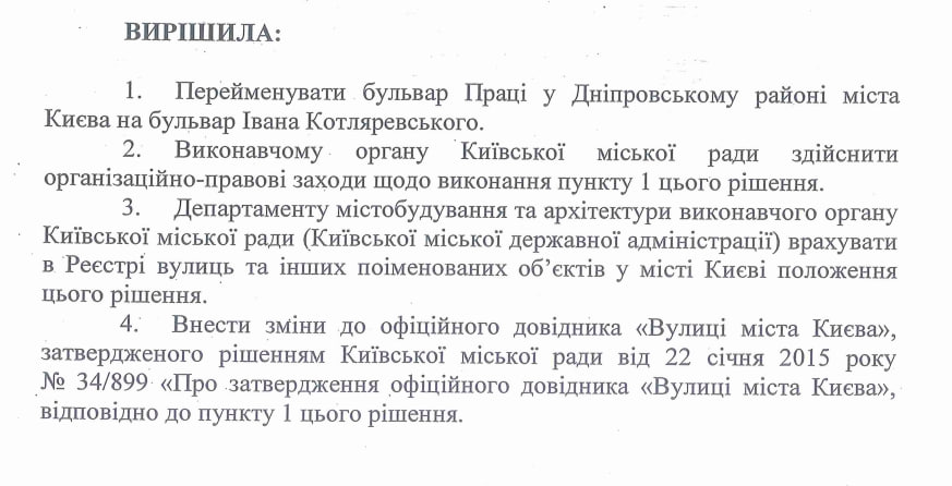 Более полувека улица сохраняла советское название, пока в 2022 году Киевский городской совет не принял историческое решение. Бульвар Труды переименовали в Бульвар Ивана Котляревского – в честь выдающегося украинского писателя, автора первого произведения на новом украинском языке, классика национальной литературы.