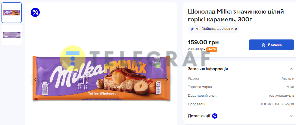 - Цена за скумбрию — 240 гривен, а шоколад стоит почти 300 гривен